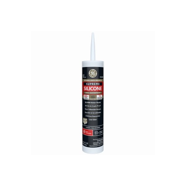 GE supreme silicone kitchen and bath sealant, clear, 101oz Supreme silicone kitchen and bath sealantisapremium, 100siliconeand100 waterproofsealant ideal for areas constantly exposed to moisture This 30minute waterready formula has 100 more flexibility than class 25 sealants and has 7x stronger adhesion than silicone 1 sealant It offers 50 joint movement capability for a shrink and crackproof seal This sealant also resists mold and mildew growth with lifetime moldfree product protection