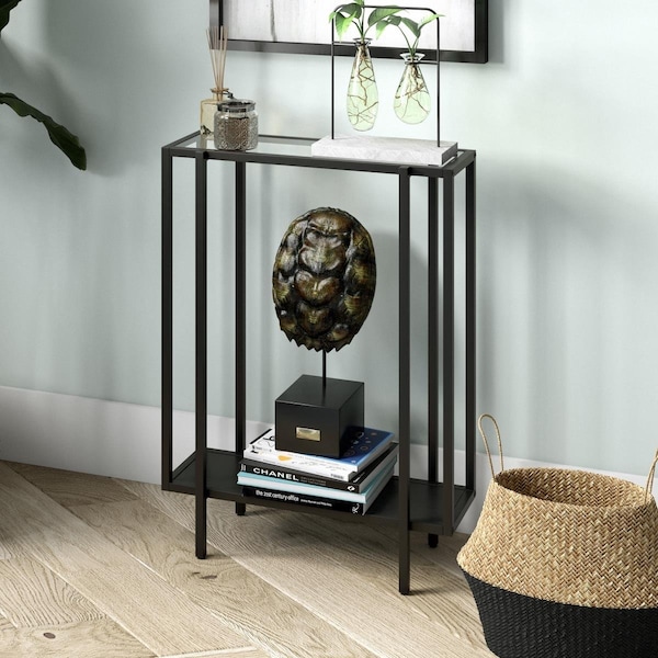 22 in. Vireo Console Table with Metal Shelf, Blackened Bronze
