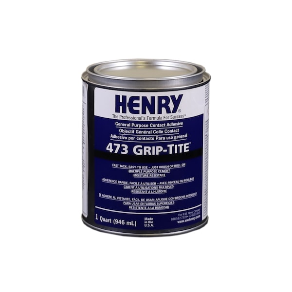 Henry 473 Multi-purpose Contact Adhesive which is a FAST-TACK dries in minutes solvent-based, rubber-resin which quickly bonds a wide variety of surfaces. General purpose contact adhesives make an immediate and permanent bond with a wide range of material, which makes it perfect for those projects. Fast tack & Easy to use, just brush on. Multipurpose cement that is moisture resistant. Wood, vinyl, rubber, leather, drywall, concrete, glass, and metal. Contact Cement. Some applications include bonding countertops, veneers, paneling, cork, medium density fiberboard, drywall, plywood, ceramic tile, stair treads, risers, wall base, and other materials. General purpose contact adhesives make an immediate and permanent bond with a wide range of material.