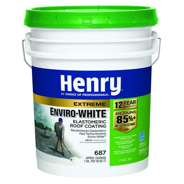 Elastomeric Roof Coating, Base Type Water, Resin Type Acrylic, Size 4.75 gal, White, Coverage 100 sq ft/gal, Dry Time 2 to 24 hr, VOC Content 50 g/L, Application Temperature 50 Degrees to 70 Degrees F, Energy Star Certified Standards