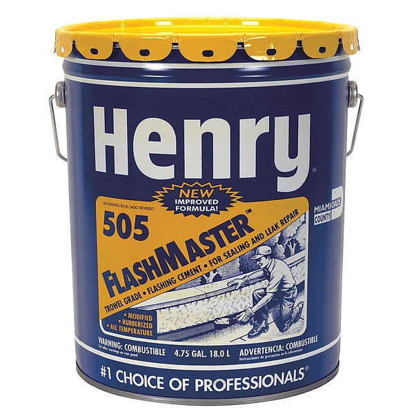 Flashing Cement, Base Type Oil, Resin Type Asphalt, Size 5 gal, Black, Finish Unfinished, Coverage 12.5 sq ft/gal, Dry Time 12 to 24 hr, Dry Time Recoat 24 hr, VOC Content 300 g/L, Surface Asphalt Coated, Chimney Flashings, Gutters, Joints In Metal Edging, Masonry Roofs, Metal Flanges, Metal Roofs, Roof Membranes, Skylights, Vents, Application Temperature Room Temperature, ASTM D4586 Standards, For Use With Chimneys, Firewalls