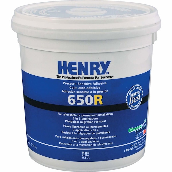 Henry 650R Releasable Bond Pressure Sensitive Adhesive is formulated with releasable bonding properties that firmly adhere throughout the service life of the floor, yet the flooring can be easily removed at any time without causing damage to the subfloor. The releasable properties and its easy roll-on application makes Henry 650R the ideal adhesive for reducing the remodel workload in rental units, condominiums or other spaces that undergo frequent replacement of floor coverings. For use in releasable installations of fiberglass reinforced sheet vinyl flooring installations. The simple roll on adhesive make it easy to apply while being solvent free and non-flammable. Sold as a 1 gallon.
