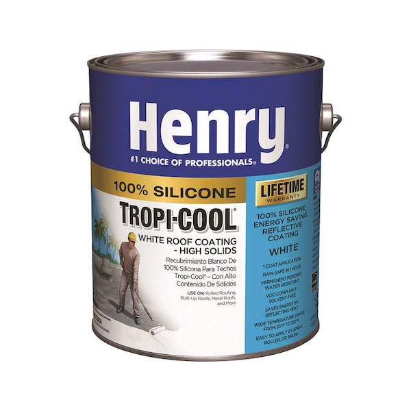 Henry 887HS Tropi-Cool 100% Silicone White Roof Coating - High Solids is a premium, 100% silicone, moisture cure coating designed to reflect the sun's heat and UV rays as well as protect many types of roofs. While suitable for use in all climates, the 100 percent silicone chemistry is especially suited for extreme tropical environments, which are exposed to some of the hottest and wettest weather with intense UV exposure. It is specially designed to maintain maximum reflectivity of heat and UV rays as it ages. Its moisture cure chemistry creates a very aggressive chemical bond with the roof, which provides permanent resistance to ponding water, extreme durability, and superior capabilities of sealing and protection.