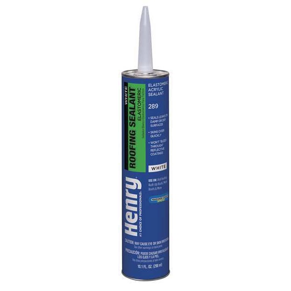 Roofing Sealant, Base Type Water, Resin Type Acrylic, Size 10.1 oz, White, Coverage 12.5 sq ft/gal, Dry Time 2 hr, Application Temperature 50 Degrees to 70 Degrees F, ASTM C-920 Standards
