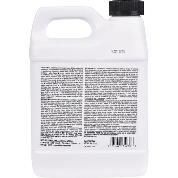 Hercules Haymaker Tankless Water Heater Descaler quickly and easily dissolves inorganic deposits that restrict flow to restore circulation and heat transfer efficiency. Citric acid based formula is non-corrosive and VOC-free.