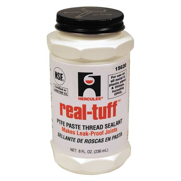 Pipe Thread Sealant, Cure Type Non-Hardening, Series Real Tuff, Container Size 9.6 fl oz, Container Type Brush-Top Can, Maximum Operating Temperature 550 Degrees F, Minimum Operating Temperature -200 Degrees F, Maximum Operating Pressure for Gases 2,600 psi, Maximum Operating Pressure for Liquids 12,000 psi, Color White, For Fluid Type Air, Alcohol, Butane, Diesel Fuel Oil, Fuels, Kerosene, Petroleum, Natural Gas, Propane, Steam, Water