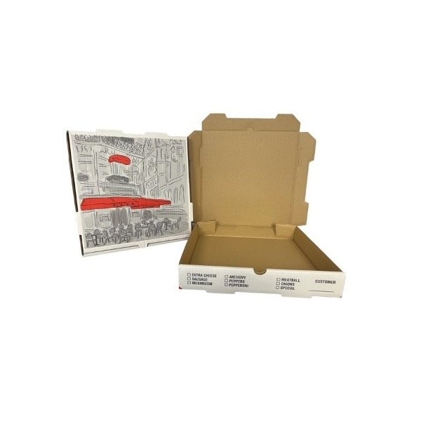 12x12x2 White Print Pizza Cafe Box White / Kraft B Flute (Discontinued)