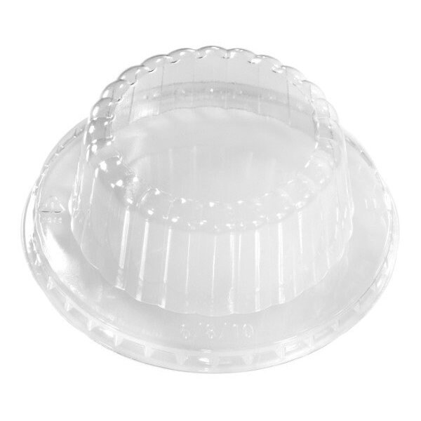 Clear PETE dome cold lid designed to fit 6, 8, 10, and 16 oz food containers. Made from clear transparent PETE plastic, this lid features a dome shape suitable for cold food applications, allowing extra space for toppings and preventing spills. Compatible with various food containers, it provides a secure fit while maintaining product visibility. The lid is durable and lightweight, designed for food service use and easy stacking. Ideal for salads, desserts, and other cold items requiring protection and presentation, available in a pack of 1000.