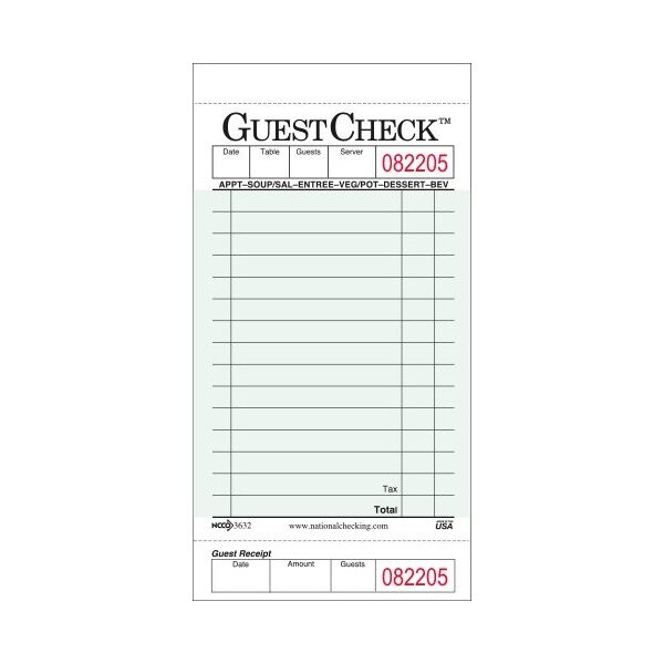 Single Copy Cardboard Guest Check 3.5" x 6.75" Green Bulk Pack Medium, 50 Sheets (Discontinued)