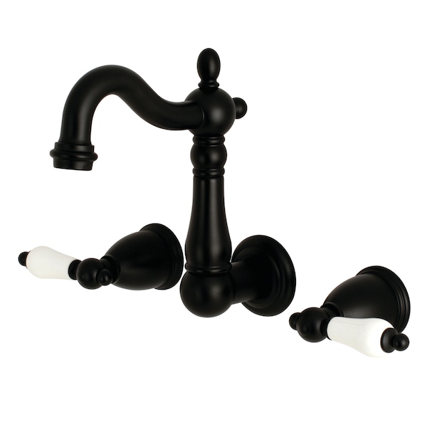 A lavish spark of traditionally stylized glamour is brought to your bathroom ensemble with this beautiful faucet. Attached to the wall behind your sink, the horizontal pop adds a stunning element to your bathroom design. The Heritage 8-Inch Center Wall Mount Bathroom Faucet and its featured sturdy brass construction and premium matte black finish are guaranteed to glamorize your home's ensemble for years to come. Celebrate sophistication and traditional decor with this statement piece.
