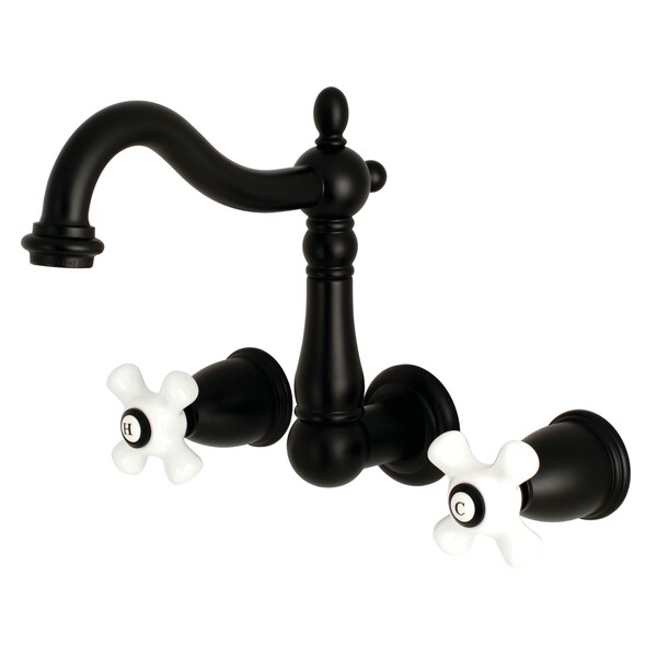 A lavish spark of traditionally stylized glamour is brought to your bathroom ensemble with this beautiful faucet. Attached to the wall behind your sink, the horizontal pop adds a stunning element to your bathroom design. The Heritage 8-Inch Center Wall Mount Bathroom Faucet and its featured sturdy brass construction and premium matte black finish are guaranteed to glamorize your home's ensemble for years to come. Celebrate sophistication and traditional decor with this statement piece.