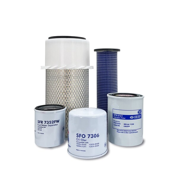 Primary Air Filter, Secondary Air Filter, Engine Oil Filter, Fuel Filter Water Separator, Hydraulic Oil Filter