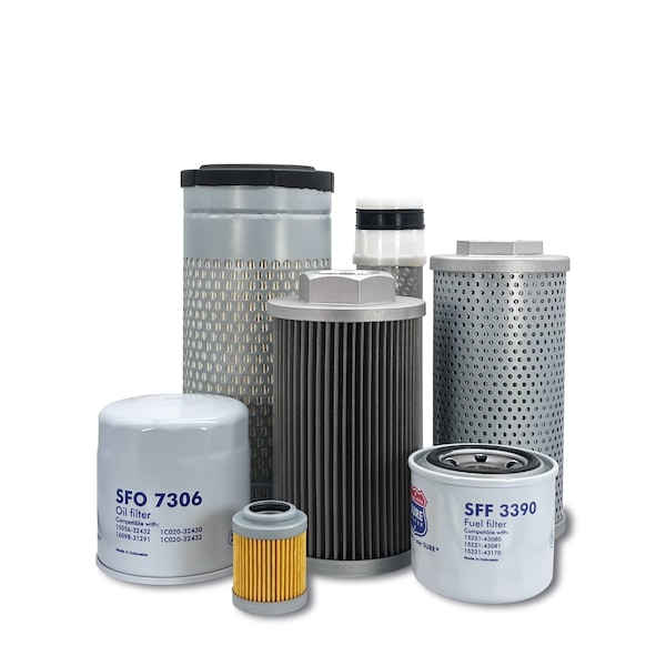 Primary Air Filter, Secondary Air Filter, Engine Oil Filter, Fuel Filter Water Separator, Hydraulic Oil Filter