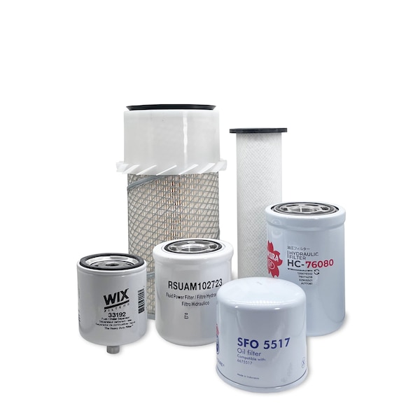 Primary Air Filter, Secondary Air Filter, Engine Oil Filter, Fuel Filter Water Separator, Hydrostatic Oil Filter, Cooling Fan Motor Spin-On Filter