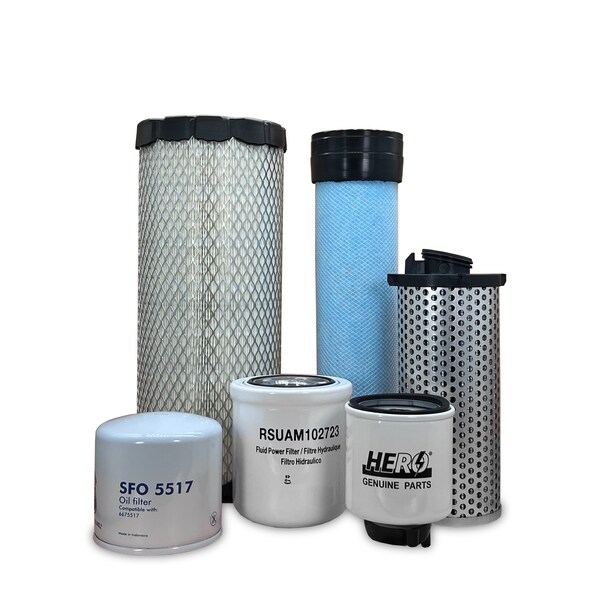 This Maintenance Filter Kit Includes Replacements For: 1 Primary Air Filter 6666375 1 Secondary Air Filter 6666376 1 Engine Oil Filter 6675517 1 Fuel Filter Water Separator 6667352 1 Hydraulic Filter Element 7414581 1 Cooling Fan Motor Spin-On Filter 7319444