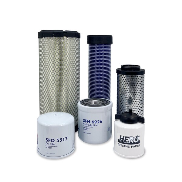 This Maintenance Filter Kit Includes Replacements For: 1 Primary Air Filter 6666333 1 Secondary Air Filter 6666334 1 Engine Oil Filter 6675517 1 Fuel Filter Water Separator 6667352 1 Hydraulic Filter Element 7024037 1 Cooling Fan Motor Spin-On Filter 7319444