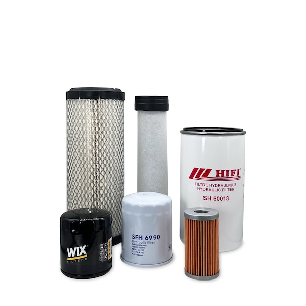 This Maintenance Filter Kit Includes Replacements For: 1 Primary Air Filter 87682998 1 Secondary Air Filter 84539215 1 Engine Oil Filter 84475542 1 Fuel Filter Element 84477366 1 Hydraulic Oil Filter 47408372 1 Hydraulic Oil Filter SBA340501030