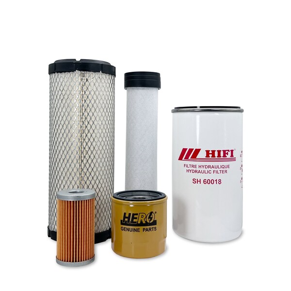 This Maintenance Filter Kit Includes Replacements For: 1 Primary Air Filter 87300179 1 Secondary Air Filter 87300181 1 Engine Oil Filter 84475542 1 Fuel Filter Element 87300042 1 Hydraulic Oil Filter 47408372