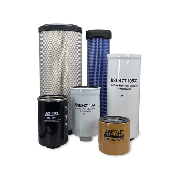 This Maintenance Filter Kit Includes Replacements For: 1 Primary Air Filter 86982522 1 Secondary Air Filter 86982523 1 Engine Oil Filter 84475542 1 Fuel Filter 84299977 1 Fuel Filter Water Separator 84561653 1 Hydraulic Oil Filter 47456328