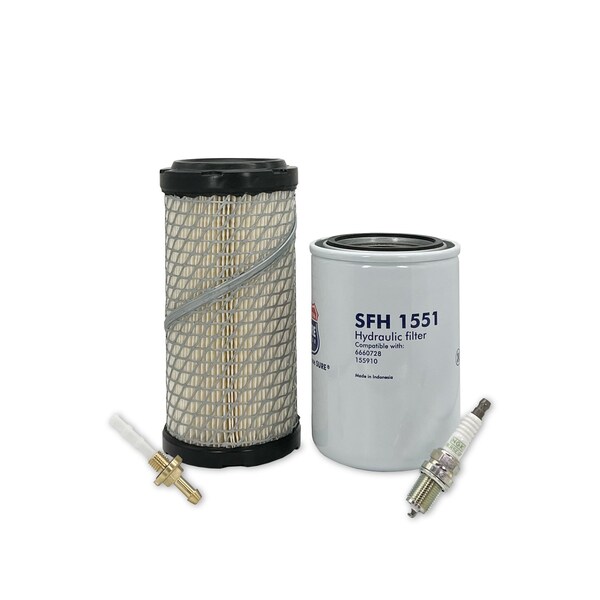 This Maintenance Filter Kit Includes Replacements For: 1 Primary Air Filter 195280 1 Fuel Filter 5002975 1 Hydraulic Oil Filter 1504388 1 Spark Plug BKR5EGP