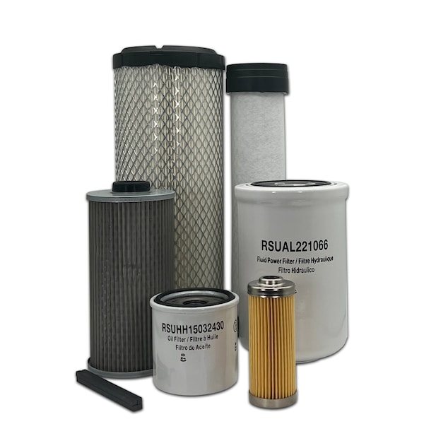 Primary Air Filter, Secondary Air Filter, Engine Oil Filter, Primary Fuel Filter, Hydraulic Oil Filter, Transmission Oil Filter