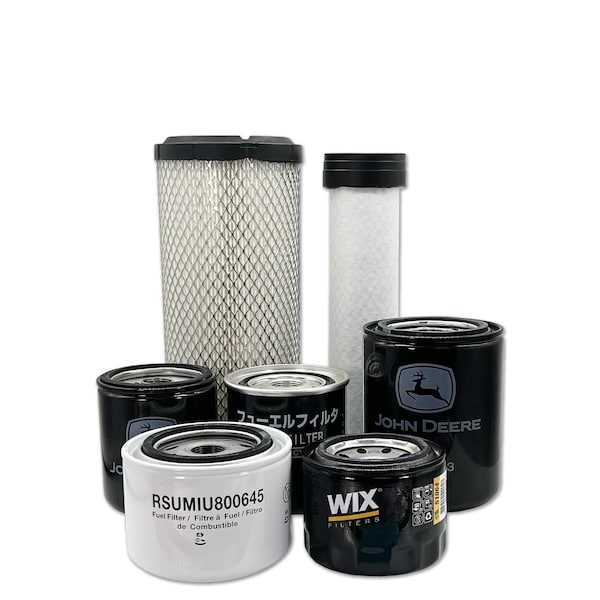 This Maintenance Filter Kit Includes Replacements For: 1 Primary Air Filter M131802 1 Secondary Air Filter M131803 1 Engine Oil Filter M806419 1 Primary Fuel Filter MIU800645 1 Secondary Fuel Filter MIU803127 1 Hydraulic Oil Filter LVA14703 1 Transmission Oil Filter LVA16054