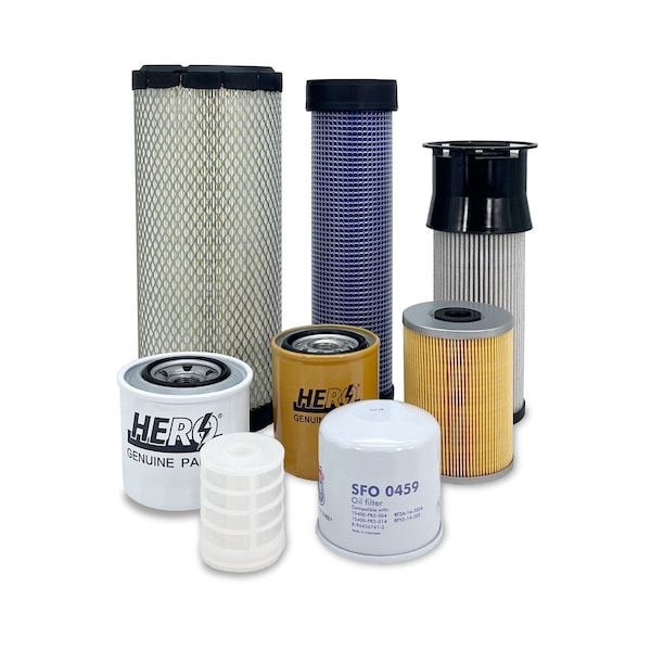 Primary Air Filter, Secondary Air Filter, Engine Oil Filter, Primary Fuel Filter Water Separator, Secondary Fuel Filter, Primary Fuel Filter, Fuel Filter Water Separator, Transmission/Hydraulic Filter