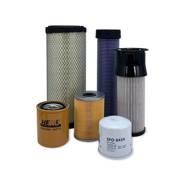 Primary Air Filter, Secondary Air Filter, Engine Oil Filter, Primary Fuel Filter Water Separator, Secondary Fuel Filter, Transmission/Hydraulic Filter