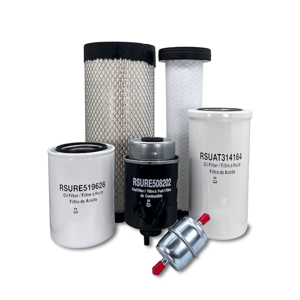 This Maintenance Filter Kit Includes Replacements For: 1 Primary Air Filter AT338105 1 Secondary Air Filter AT336803 1 Engine Oil Filter RE519626 1 Hydraulic Oil Filter AT314164 1 Fuel Water Separator Filter RE508202 1 In-Line Fuel Filter T257865