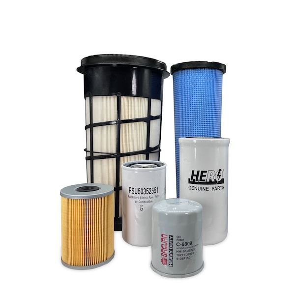 Primary Air Filter, Secondary Air Filter, Engine Oil Filter, Primary Fuel Filter Water Separator, Final Fuel Filter, Hydraulic Oil Filter