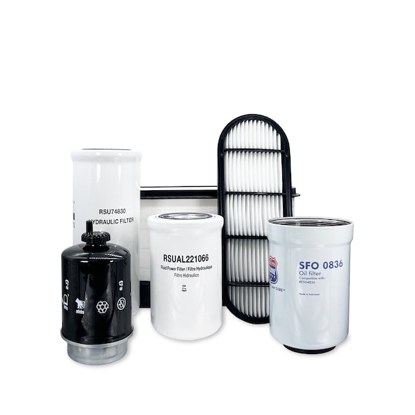 This Maintenance Filter Kit Includes Replacements For: 1 Primary Air Filter AL172780 1 Secondary Air Filter AL150288 1 Engine Oil Filter RE504836 1 Final Fuel Filter RE62419 1 Hydraulic Oil Filter AL118036 1 Transmission Oil Filter AL221066/TRANS