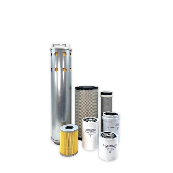 This Maintenance Filter Kit Includes Replacements For: 1 Primary Air Filter FYD00001541 1 Secondary Air Filter FYD00001327 1 Engine Oil Filter MIU800650 1 Primary Fuel Filter Water Separator MIU802421 1 Final Fuel Filter MIU802154 1 Hydraulic Tank Oil Filter Element FYA00008642 1 Pilot System Oil Filter Element 4630525