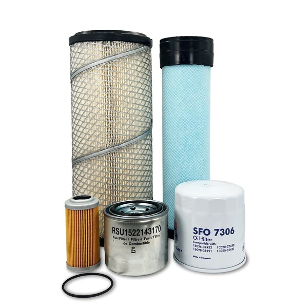 This Maintenance Filter Kit Includes Replacements For: 1 Primary Air Filter RD45242270 1 Secondary Air Filter RD45242280 1 Engine Oil Filter HH1C032430 1 Fuel Filter 1522143170 1 Hydraulic Pilot Oil Filter R141164930
