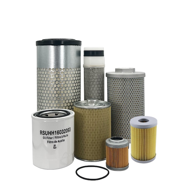 This Maintenance Filter Kit Includes Replacements For: 1 Primary Air Filter TC02016320 1 Secondary Air Filter T027093220 1 Engine Oil Filter HH16032093 1 Pilot System Oil Filter Element RD40161270 1 Fuel Filter RA21151280 1 Hydraulic Suction Filter RB41162150 1 Hydraulic Return Oil Filter RB41162190