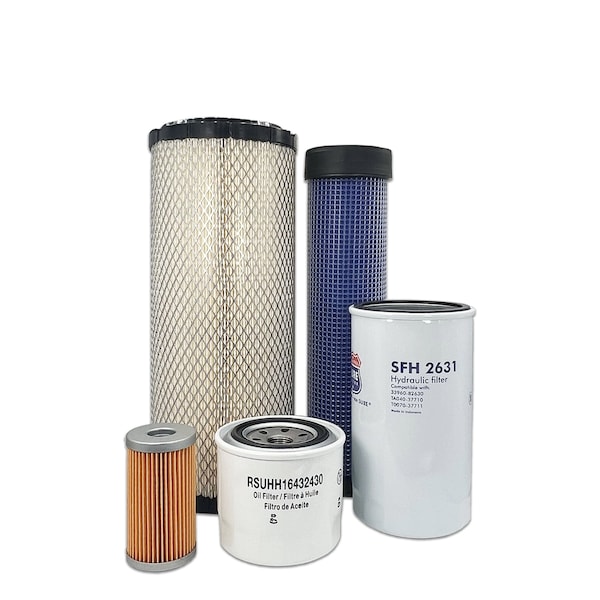 This Maintenance Filter Kit Includes Replacements For: 1 Primary Air Filter 5980026110 1 Secondary Air Filter 3A11119130 1 Engine Oil Filter HH16432430 1 Hydraulic Suction Filter HHTA037710 1 Fuel Filter 1552143160