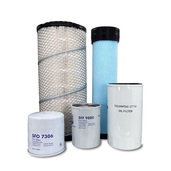 This Maintenance Filter Kit Includes Replacements For: 1 Primary Air Filter 5970026112 1 Secondary Air Filter 5523126150 1 Engine Oil Filter HH1C032430 1 Fuel Filter HH16643560 2 Hydraulic Suction Filter HHTA037710