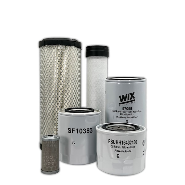 This Maintenance Filter Kit Includes Replacements For: 1 Primary Air Filter R140142270 1 Secondary Air Filter R240142280 1 Engine Oil Filter HH16432430 1 Hydraulic Suction Filter HHTA037710 1 Fuel Filter Element 1A00143160