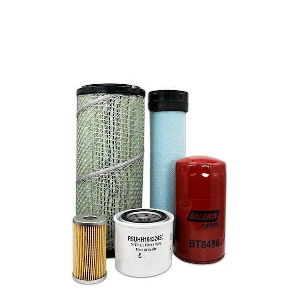 This Maintenance Filter Kit Includes Replacements For: 1 Primary Air Filter R140142270 1 Secondary Air Filter R240142280 1 Engine Oil Filter HH16432430 1 Hydraulic Suction Filter HHTA037710 1 Fuel Filter Element 1A00143160
