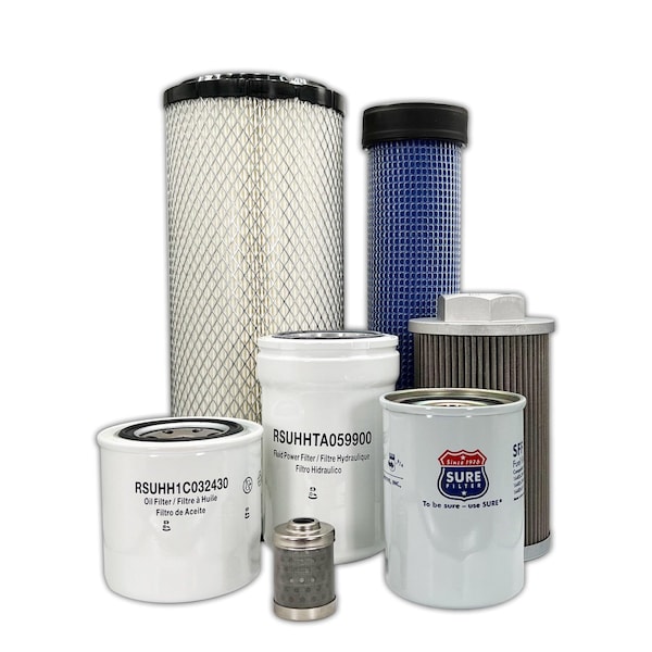 This Maintenance Filter Kit Includes Replacements For: 1 Primary Air Filter 5980026110 1 Secondary Air Filter 3A11119130 1 Engine Oil Filter HH1C032430 1 HST Filter HHTA059900 1 Hydraulic Oil Suction Filter 6877362210 1 Hydraulic Return Oil Filter V051165150 1 Fuel Filter HH16643560 1 Fuel Water Separator Filter RD81951280