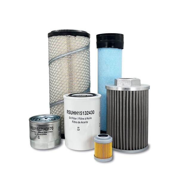 This Maintenance Filter Kit Includes Replacements For: 1 Primary Air Filter R140142270 1 Secondary Air Filter R240142280 1 Engine Oil Filter HH15132430 1 Fuel Filter 1522143170 1 Hydraulic Oil Suction Filter RD41162210 1 Pilot System Oil Filter Element RD40161270