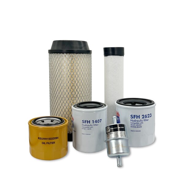 This Maintenance Filter Kit Includes Replacements For: 1 Primary Air Filter K318182240 1 Secondary Air Filter K318182250 1 Engine Oil Filter HH15032094 1 Fuel Filter Element 1258143012 1 Transmission Oil Suction Filter HHK3216772 1 HST Filter HHK7014073