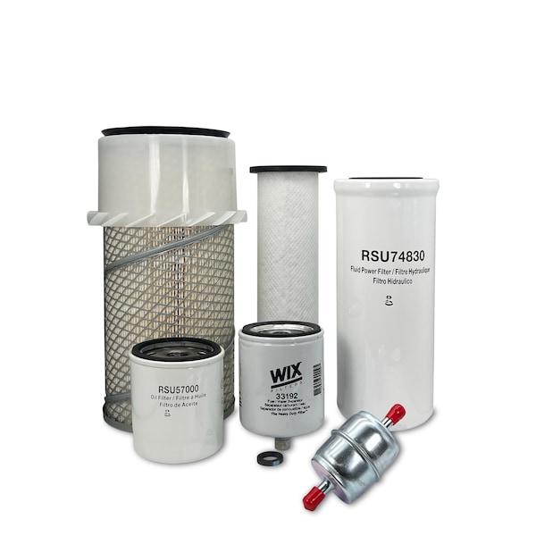 This Maintenance Filter Kit Includes Replacements For: 1 Primary Air Filter 87035488 1 Secondary Air Filter 87035489 1 Engine Oil Filter 84475542 1 Hydraulic Oil Filter 87010592 1 In-Line Fuel Filter 9611973 1 Fuel Filter Water Separator 87036044