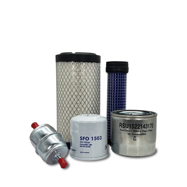 This Maintenance Filter Kit Includes Replacements For: 1 Primary Air Filter K121182320 1 Secondary Air Filter K756182360 1 Engine Oil Filter HH15032430 1 Fuel Filter Spin-On 7000043081 1 Fuel Filter Element 1258143012 1 Hydraulic Oil Filter 48758