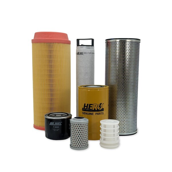 Primary Air Filter, Secondary Air Filter, Engine Oil Filter, Fuel Filter Spin-On, Fuel Filter Water Separator, Hydraulic Oil Filter, Hydraulic Oil Filter
