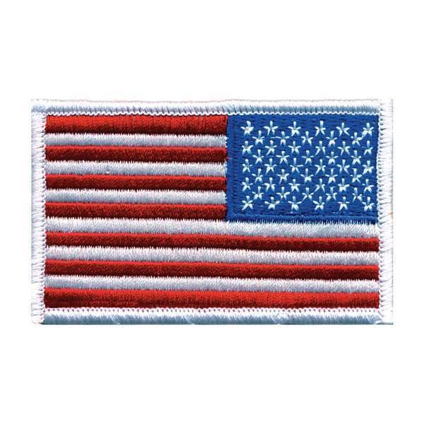 Embroidered Patch, Material Plastic, Industry Type Law Enforcement, Patch Type Flag, Symbol Reverse, U.S. Flag, Color White, Red, Size 3 3/8 in x 2 in