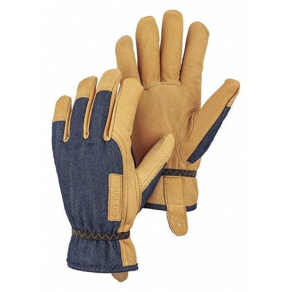 Glove,Leather,Goatskin,Denim/Tan,M, 1 Pair