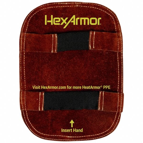 Heat-Reflective Aluminized Pad, Leather, 8 in Length, Silver; Brown; Hi Vis, Elastic Cuff