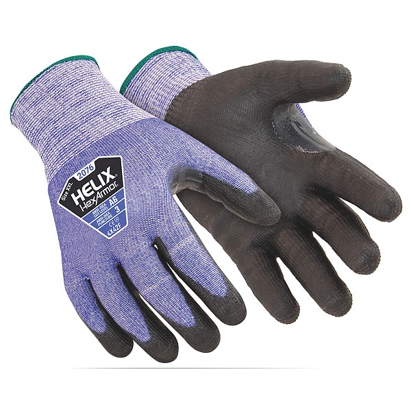 Helix Cut-Resistant Coated Gloves, A6 Cut, Polyurethane, HPPE, Black/Blue, 4XL (Size 11), 1 Pair