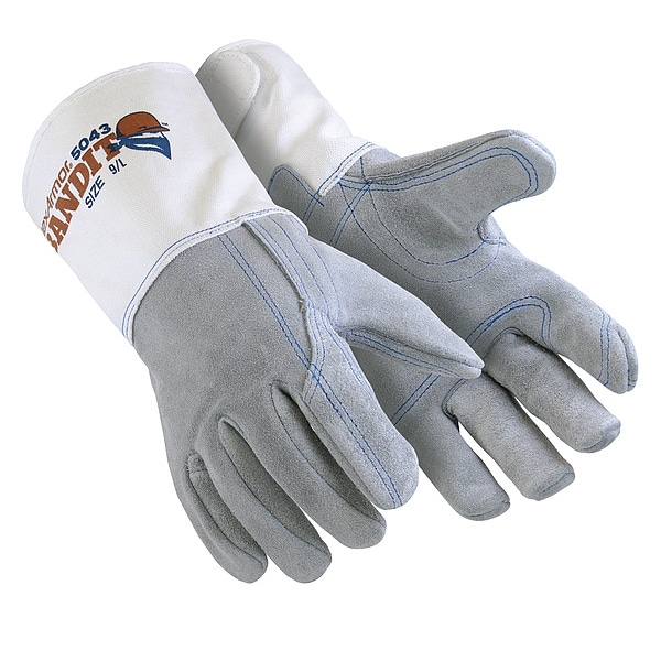 Leather Gloves, Cowhide, Gauntlet Cuff, Wing Thumb, Full Finger, Gray / Gray, S, 1 PR