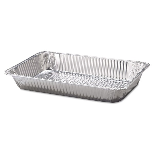 Ridged aluminum foil pan provides superior quality for cooking, freezing and storing. Excellent for catering. Used for hot or cold foods. Increased strength and holding power. Economical and recyclable.
